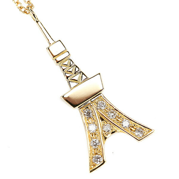 Diamond Necklace 0.07ct K18YG Tower | 18K Diamond Daily Use Simple Cute Stylish Casual [Used] [SH105532]