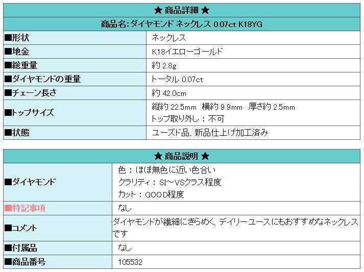 Product name: Diamond necklace 0.07ct K18YG Tower