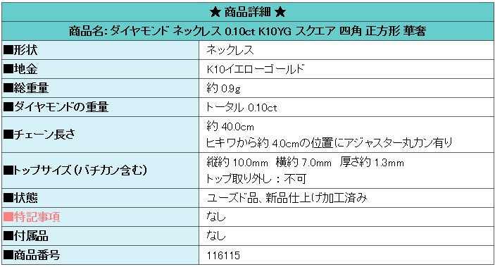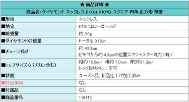 Product name: Diamond necklace 0.10ct K10YG square rectangular delicate