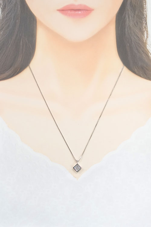 Princess Cut Diamond Necklace 1.00ct Pt900 Mystery Setting Square Rectangular Modified Cut Fancy Cut | Diamond Platinum Simple Elegant Cute Stylish [SH118298]