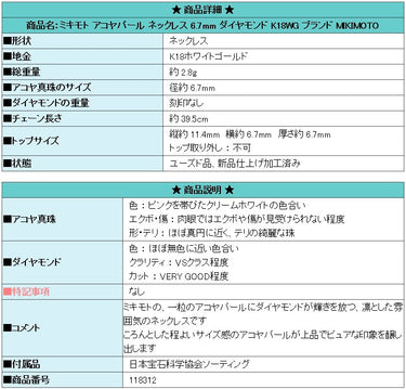 Product name: MIKIMOTO Akoya pearl necklace 6.7mm diamond K18WG Brand MIKIMOTO