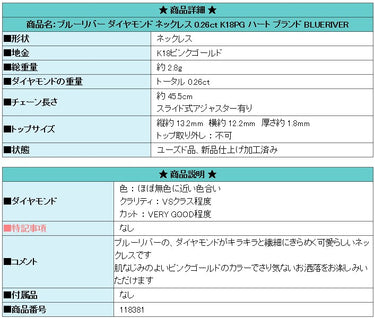 Product name: Blue River Diamond Necklace 0.26ct K18PG Heart Brand BLUERIVER