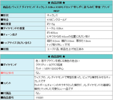 Product name: Wisp Diamond Necklace 0.09ct K18PG Drop Droplet Tear Tear Delicate Brand WISP