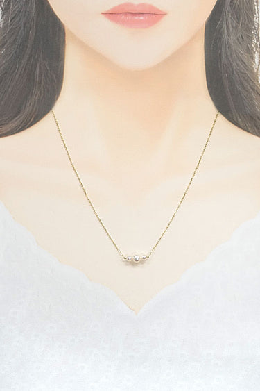 This elegant necklace from Mikimoto features three symmetrical Akoya pearls.
