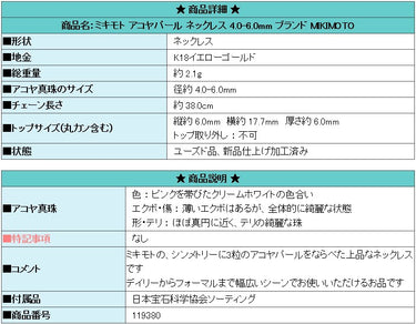 Product name: MIKIMOTO Akoya pearl necklace 4.0-6.0mm Brand: MIKIMOTO