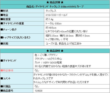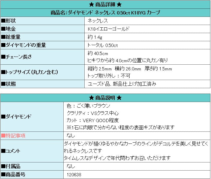 Diamond necklace 0.50ct K18YG curved | 18K gold diamond daily use simple elegant cute stylish [Used] [SH120638]