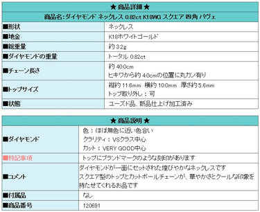 Product name: Diamond necklace 0.82ct K18WG square pave