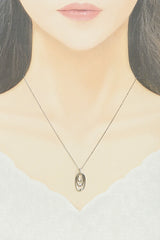 A modern necklace from Aroot featuring three large and small ovals each set with diamonds.