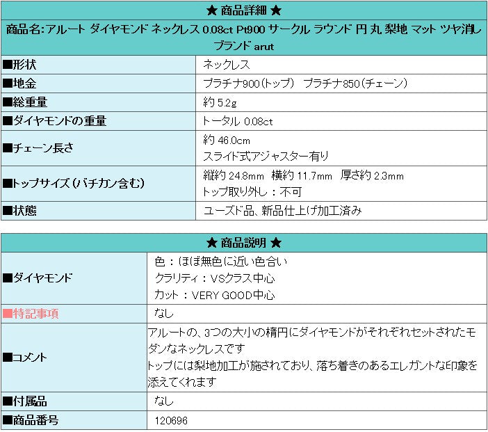 Product name: arut diamond necklace 0.08ct Pt900 circle round circle round matte finish brand arut