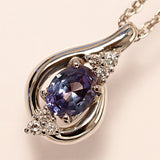 This elegant necklace is set with recrystallized alexandrite from Cresent Bell, which has an attractive and mysterious color.