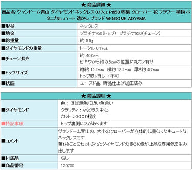Product name: Vendome Aoyama Diamond Necklace 0.17ct Pt950 Four-leaf clover Flower Plant Botanical Heart Openwork Brand VENDOME AOYAMA