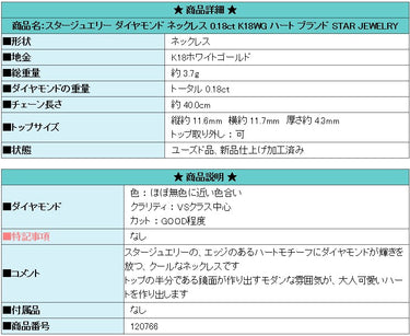 Product name: Star Jewelry Diamond Necklace 0.18ct K18WG Heart Brand STAR JEWELRY