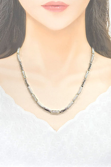 This is an elegant necklace by Nobuko Ishikawa that allows you to enjoy the different textures of the metals.