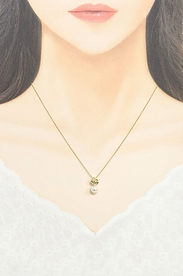 This elegant necklace from Tasaki features a single round pearl with a single flower blooming on it.