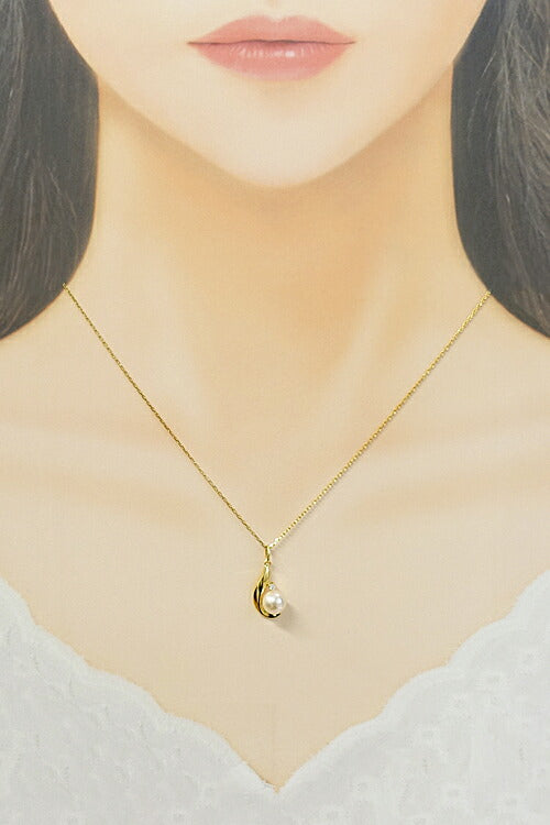 MIKIMOTO Akoya Pearl Necklace 6.7mm Diamond K18YG Brand MIKIMOTO | 18K Akoya Pearl White Pearl Japanese Pearl Diamond Daily Use Cute Stylish [Used] [SH121207]