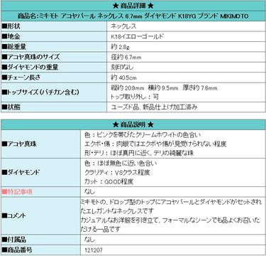 Product name: MIKIMOTO Akoya pearl necklace 6.7mm diamond K18YG Brand MIKIMOTO