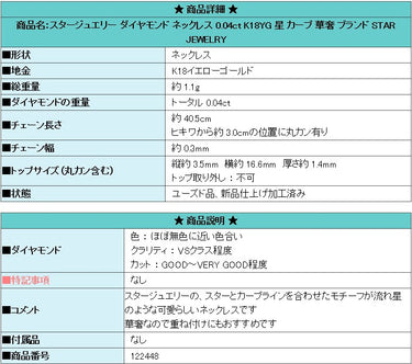 Product name: Star Jewelry Diamond Necklace 0.04ct K18YG Star Curve Delicate Brand STAR JEWELRY