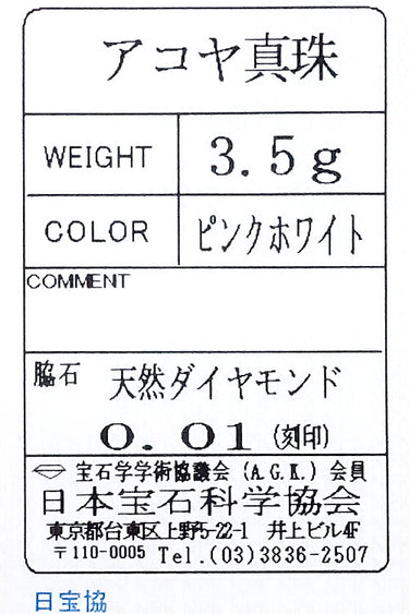 アコヤ真珠 色:ピンクを帯びたクリームホワイトの色合い
