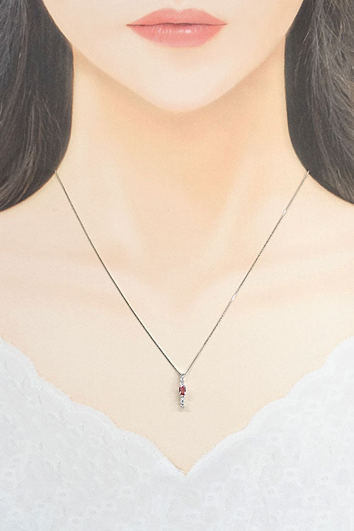 コメント あたたかい色合いのパパラチアサファイアが美しく彩る、可愛らしさを感じるネックレスです。縦に長いデザインなので、首元から胸元のラインをスッキリと見せてくれます。