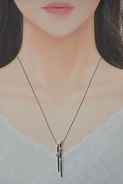 コメント タサキの、大小のダイヤモンドが眩く輝く、スタイリッシュなネックレスです。縦ラインをスッキリと見せてくれるデザインと上品に揺れるトップが、凛とした美しさを演出してくれます。