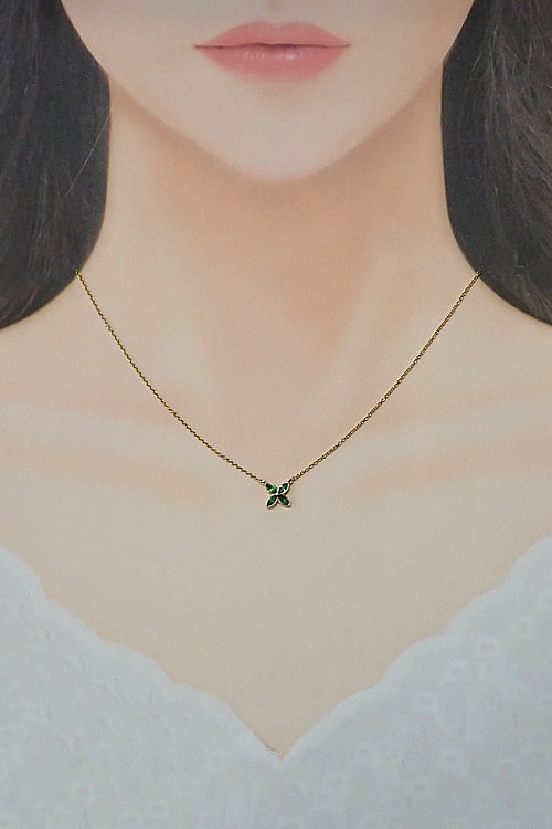 コメント ティファニーの、花のようにセットされたグロッシュラーガーネットのグリーンカラーがエレガントな、ビクトリアシリーズのネックレスです。ベゼルセッティングでスッキリと留められているため、イエローゴールドの細い縁取りのラインがシルエットを美しく際立たせます。