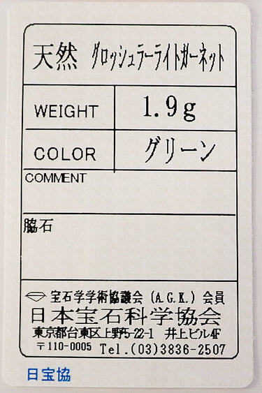 グロッシュラーガーネット 色:濃いグリーンの色合い
