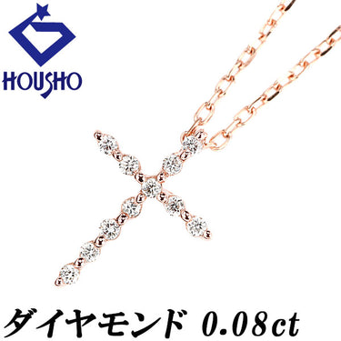 Diamond necklace, K10 pink gold, cross, crucifix, delicate [Used] [901046]