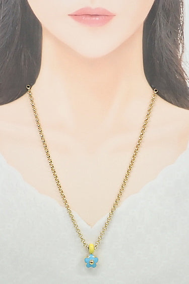 コメント ポンテヴェキオの、イエローとライトブルーのエナメルで彩られたフラワーモチーフがキャッチーでポップな雰囲気のネックレスです。ボリューミーですが、トップは中空、チェーンもコプラチェーンなので、見た目よりも軽い着け心地です。