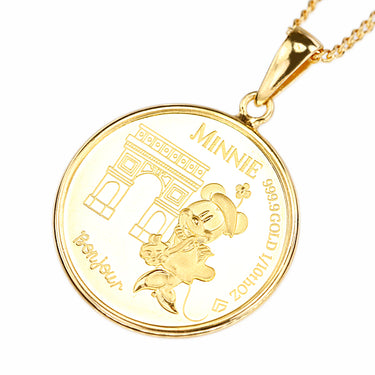 Disney Necklace K24 Ingot K24 Yellow Gold Disney Mickey Minnie Paris Character Coin 1/10oz 1/10oz Pure Gold Coin Medal Long [Used] [901406]