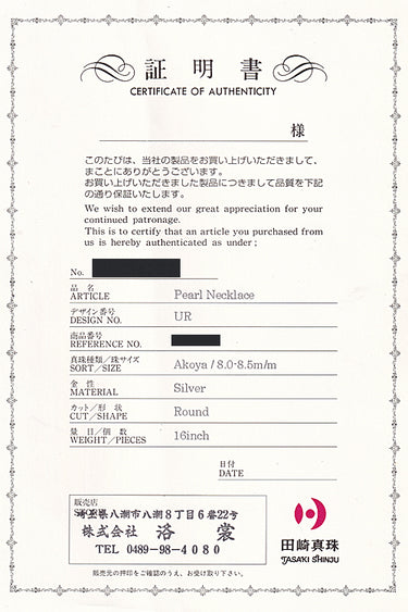 商品名 タサキ 田崎真珠 アコヤ真珠 ネックレス SV TASAKI 連