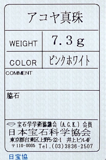 アコヤ真珠 色:ピンクを帯びたクリームホワイトの色合い