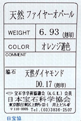 ファイアオパールの重量 6.93ct