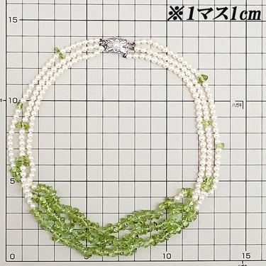 コメント ミキモトの、小ぶりなアコヤパールの連ネックレスに、ペリドットが贅沢にあしらわれた、エレガントなネックレスです。1本ごとは細めですが、3連なのでボリューミーにお召いただけます。