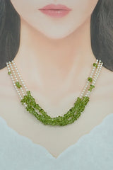 Mikimoto Peridot Necklace with Akoya Pearls and Silver Sterling Silver. Stackable Style, Three Strands of Baby Pearls. [Pre-owned] [Item Number 901765]