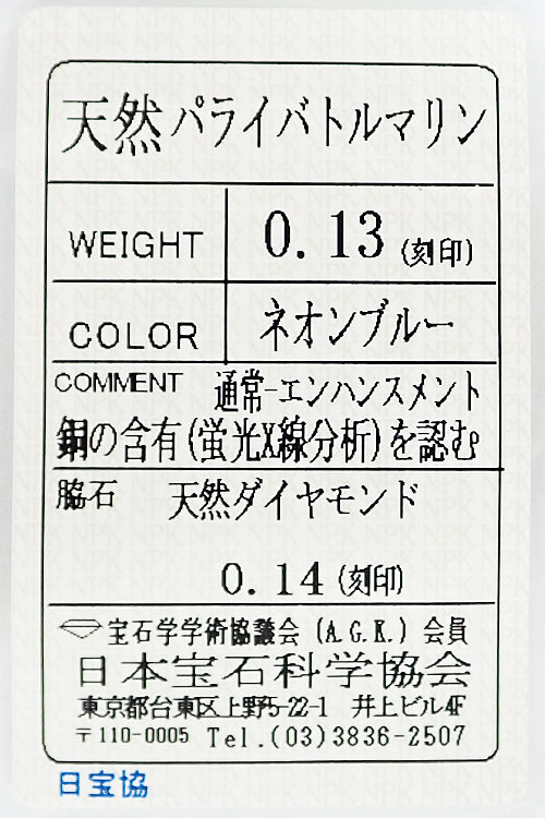 パライバトルマリンの重量 0.13ct