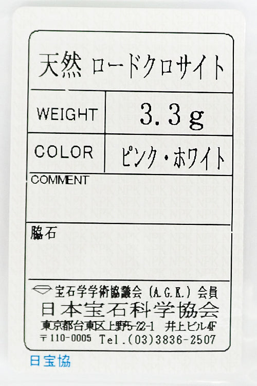 ロードクロサイト 色:白の縞模様のあるオレンジを帯びたピンクの色合い