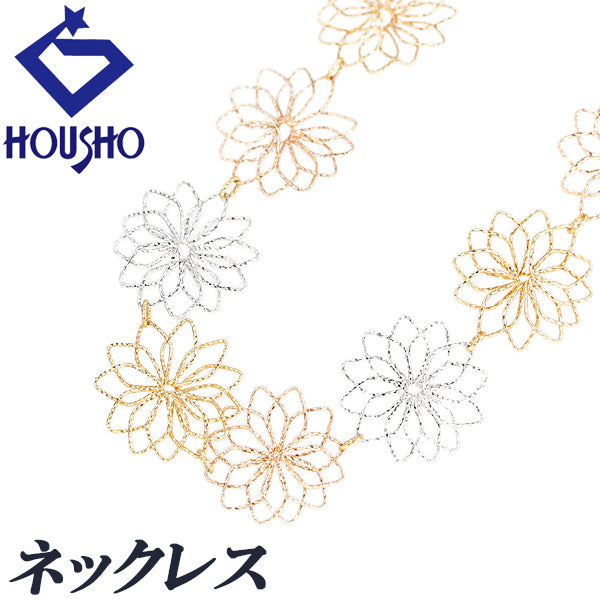 商品名 ネックレス K18イエローゴールド K18ホワイトゴールド K18ピンクゴールド 花 フラワー 植物 ボタニカル スリーカラーゴールド 透かし 地金のみ 石なし
