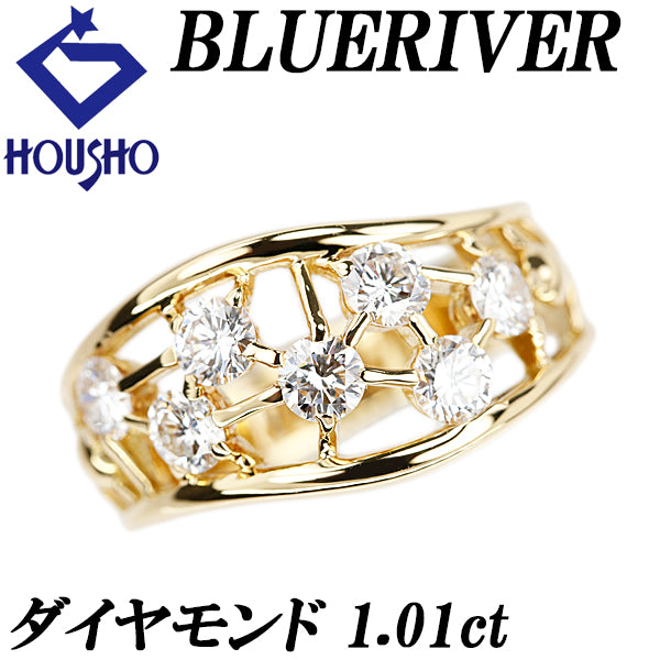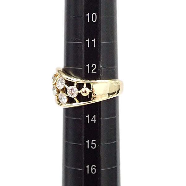 ブルーリバー ダイヤモンド リング K18イエローゴールド BLUE RIVER ウェーブ 透かし 太め 幅広【中古】【904321】