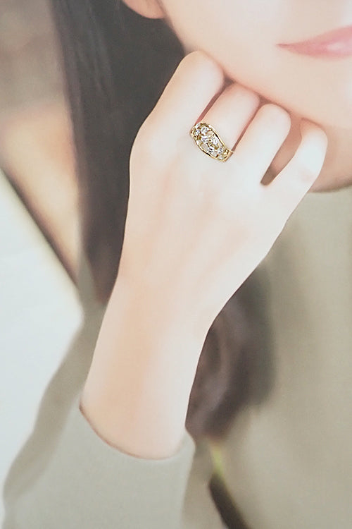 商品名 ブルーリバー ダイヤモンド リング K18イエローゴールド BLUE RIVER ウェーブ 透かし 太め 幅広
