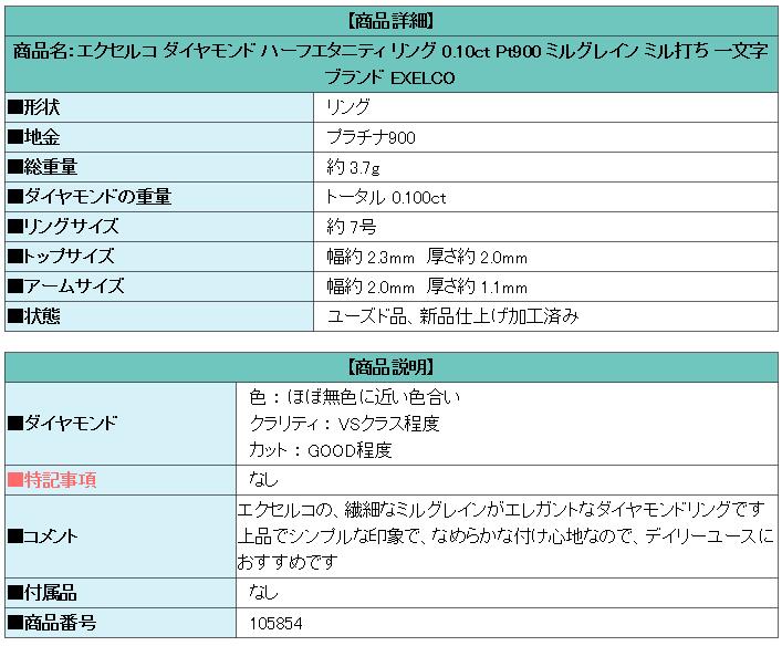 Product name: EXELCO Diamond Half Eternity Ring 0.10ct Pt900 Milgrain Millgrain Single Letter Brand EXELCO