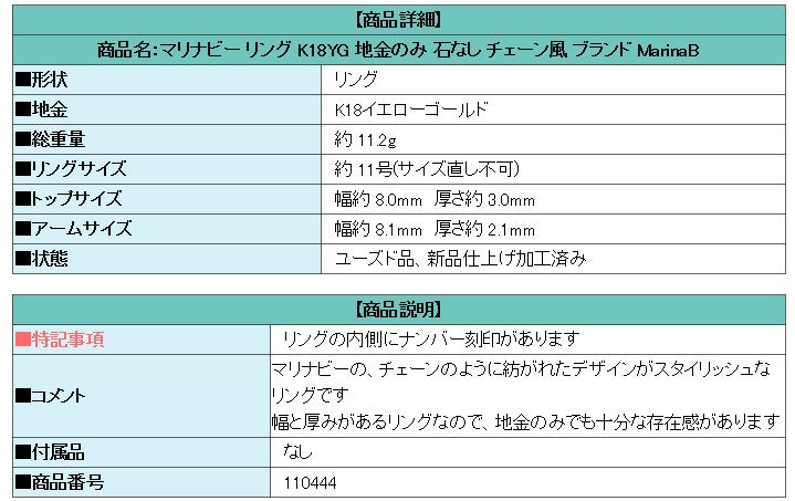 Product name: Marina B ring, K18YG, metal only, no stones, chain style, brand: Marina B