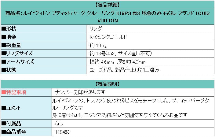 Product name: Louis Vuitton Petite Bourg Crew Ring K18PG #53 Base metal only No stones Brand LOUIS VUITTON