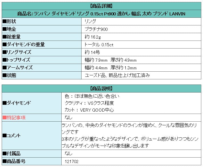 Product name: Lanvin Diamond Ring 0.15ct Pt900 Openwork Wide Thick Brand LANVIN