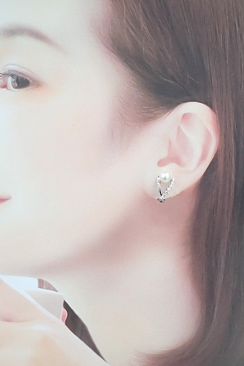 タサキ 田崎真珠 アコヤ真珠 イヤリング ダイヤモンド K18ホワイトゴールド TASAKI ダブルライン 透かし【中古】【906085】