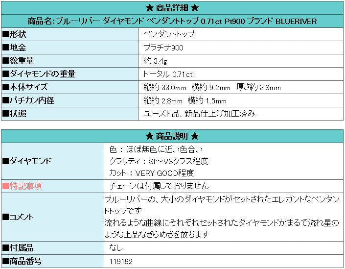 Product name: Blue River Diamond Pendant Top 0.71ct Pt900 Brand BLUERIVER