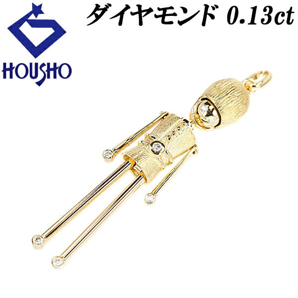 Diamond pendant top 0.13ct K18YG British Royal Guard Soldier Guardsman doll matte finish | 18K gold diamond cute stylish [Used] [SH119226]