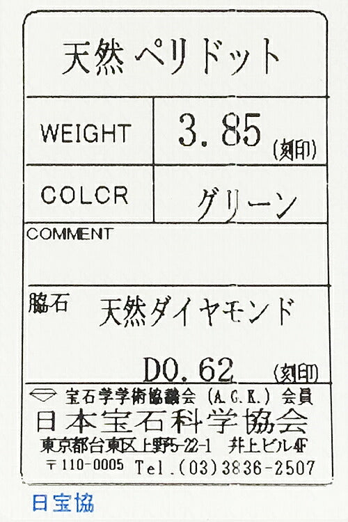 気になることがあったので質問したのですが、すぐ返信があり購入前から安心感がありました。配送も早く、説明通り、鑑定書も付いていて安心しました。今後も入荷をチェックして気にいったものがあれば購入したいと思いました。