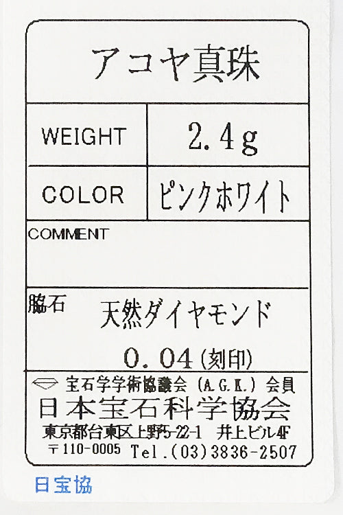 アコヤ真珠 色:ピンクを帯びたクリームホワイトの色合い