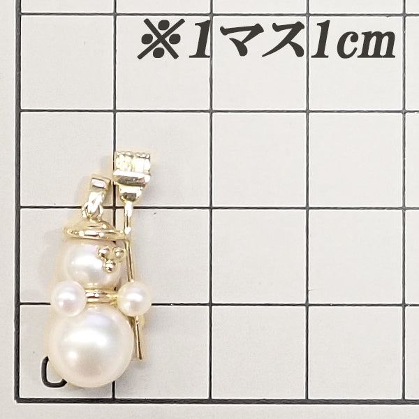 Akoya pearl pendant top, K18 yellow gold, snowman [Used] [900274]