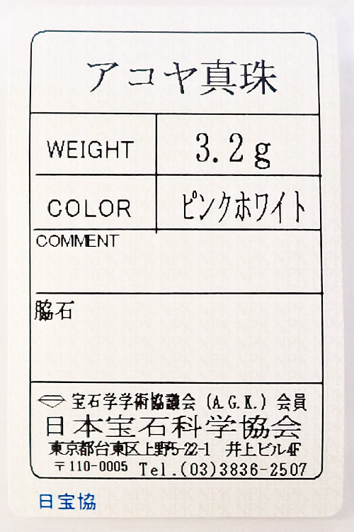 アコヤ真珠 色:ピンクを帯びたクリームホワイトの色合い